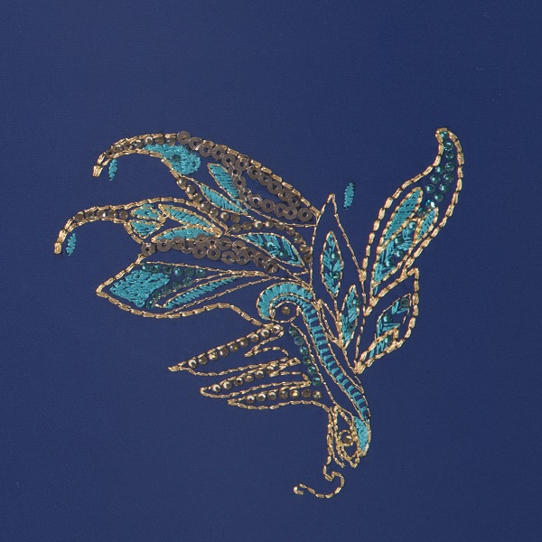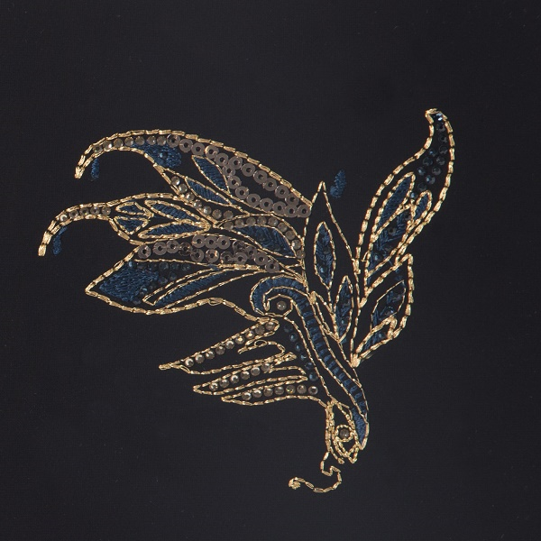 後ろポケットにスパンコールとクリスタルの付いた刺繍入り
