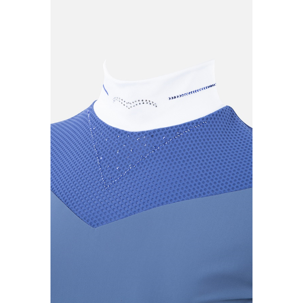 胸元は軽量で通気性の良いメッシュ生地を使用し、クリスタルが散りばめられたデザイン
