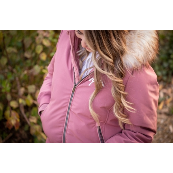 最高の保温性を実現する厚手のパッド入り、2つのジップポケット、フェイクファー付きフードが特徴です。