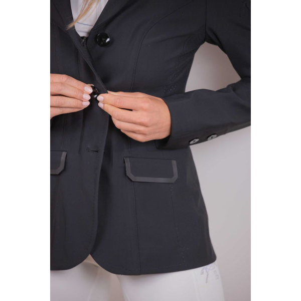 仕立ての良さとフェミニンさを追求したこのジャケットは、様々な体型に美しく映えます。快適性とエレガンスを兼ね備え、乗馬ショーに最適です。