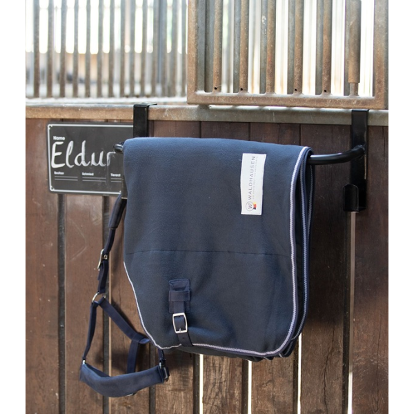厩舎の入り口前をすっきりと整頓できる、ホルター/手綱ホルダー2個付き。