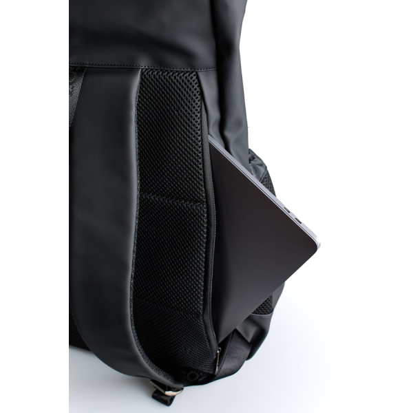 ノートパソコン収納ポケット、サイドにはペットボトルポケット。