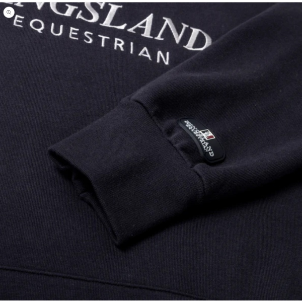 胸には「KINGSLAND」のロゴ刺繍、左の袖口にはラバータイプのロゴ付き。