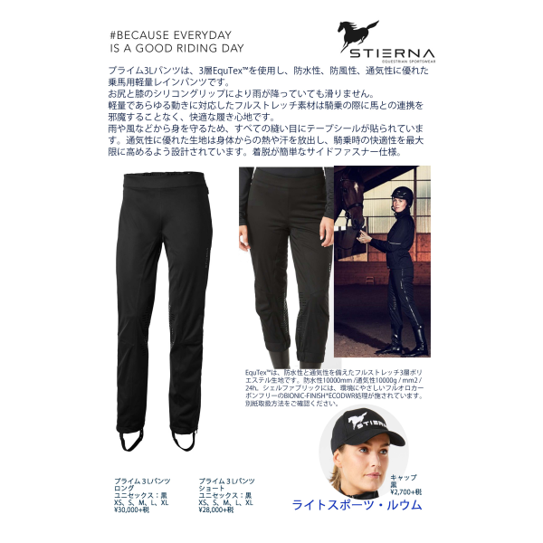 防水性、防風性、通気性を備えたフルストレッチ3層ポリエステル生地EquTex使用の軽量なパンツです。