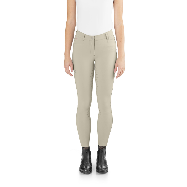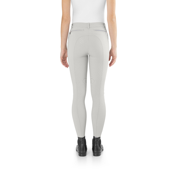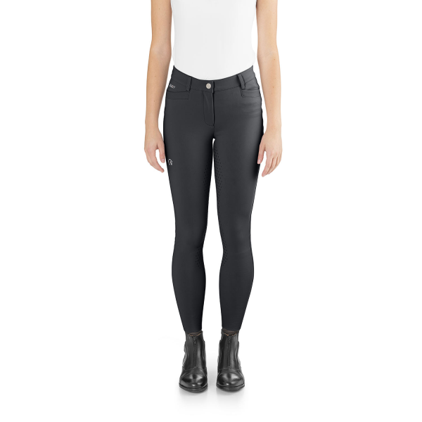 ウエスト部分の内側にシャツが上がらないように防止するグリップが付いています。イタリア製のジャージー生地で4方向に伸縮して動きを妨げず、サポート力と形状保持力に優れた完璧なフィット感を保証します。これまでにない快適さ、通気性、乗馬中の馬とのより良いコンタクトを実現します。フロントボタンはエクストリーム スポーツ用に特許を取得した COBRAX ボタンが採用されています。すそはマジックテープや生地の切り替えもありませんのでストレスなくブーツやチャップスが足になじみます。